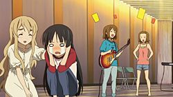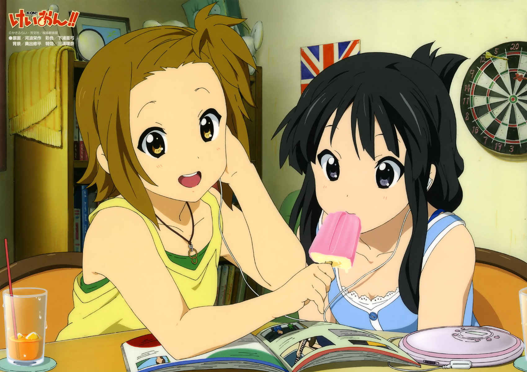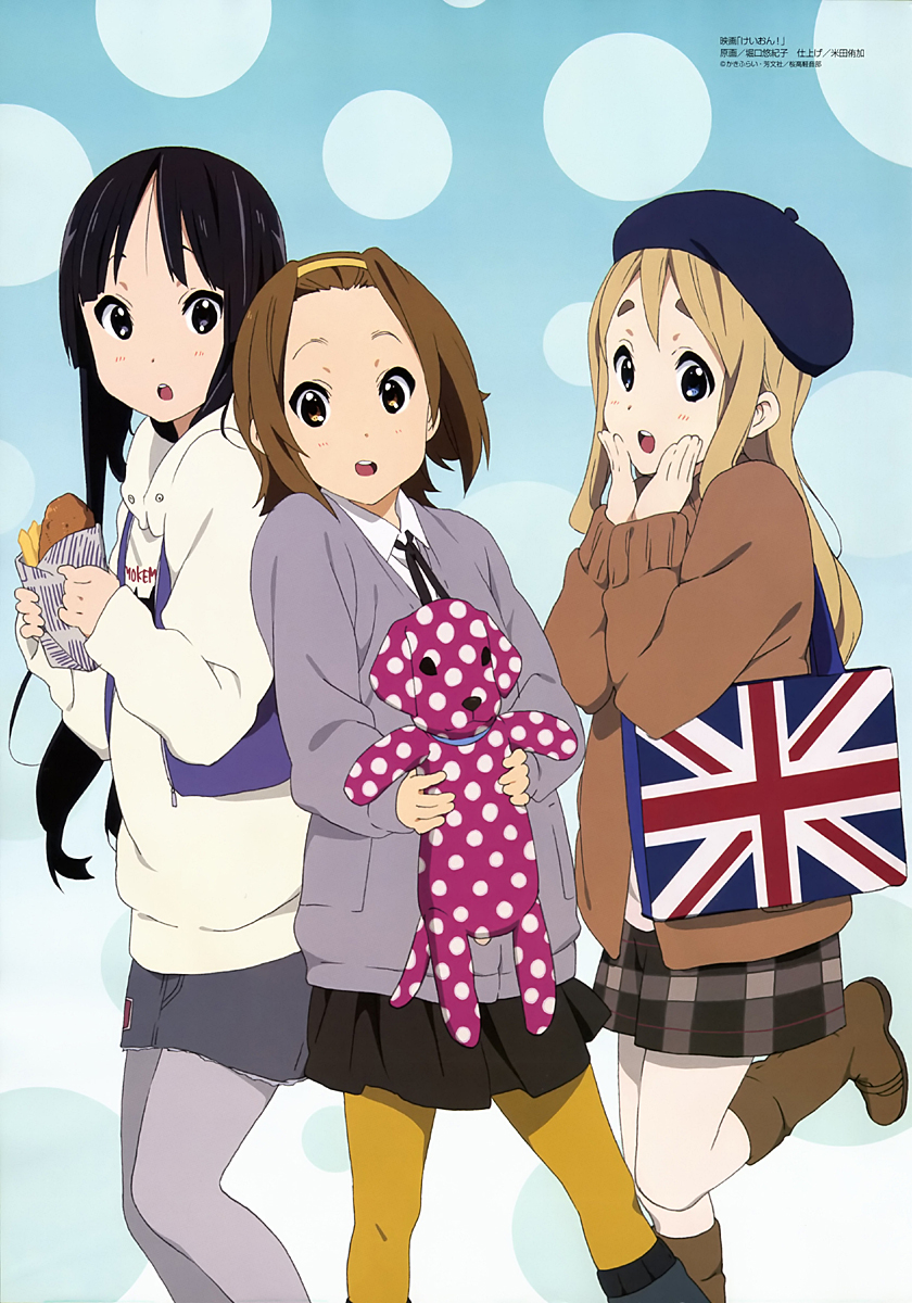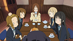 K-On, un anime que j'ai carrément adoré, je me suis par contre arrêté à la saison 1 mais j'ai bien l'impression que c'était le bon moment, la deuxième saison étant carrément plus longue : 26 épisodes contre 12 pour la première, j'avais peur que ça m’écœure avant la fin.