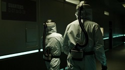 Et bien le gros point fort de Helix c'est que ça bouge. Pas de blabla, on rentre tout de suite dans l'histoire. Comme cela se passe au milieu de l'Artique y'a pas beaucoup de lieux à montrer et donc hop, l'histoire débute de suite avec les protagonistes que nous suivrons tout du long de la série. Ce qu'il faut savoir c'est que "Helix" est une production originale de Scy-Fy et qu'elle fleurte sur la vague des séries à coût de production bridé ^^ Mais comme ils ont choisis de faire ça dans un bunker au milieu de l'Artique cela suffit ! Ils n'ont pas besoin d'avoir des costumes pour refaire une époque ou de devoir bouger dans des lieux à droite à gauche. Non, tout cela est bien calé mais sans fioritures et ça suffit. On ressentira quand même ce manque de moyens à certains moments mais sans grande incidence. Non, y'a un truc qui m'a assez déçu par la suite et ce n'est pas ça.
