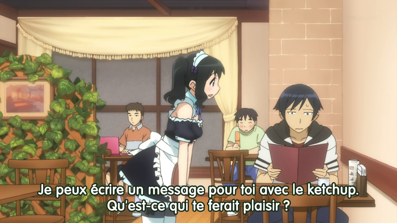 Sinon pour l'image qui vient d'être mise euh.. le seul anime que je connais assez bien avec des omelettes et un message dessus ce serait Kaichou Wa Maid Sama? x)