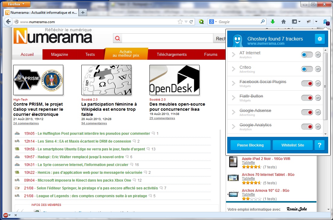 La raison est toute simple : de base, si l'on ne fait qu'installer Ghostery et bien rien n'est bloqué, ce qui n'est pas plus mal, l'utilisateur devra alors lui même faire les changements et ne pas se contenter bêtement d'intaller et basta~ (oui, c'est ce que j'avais fait ^^)