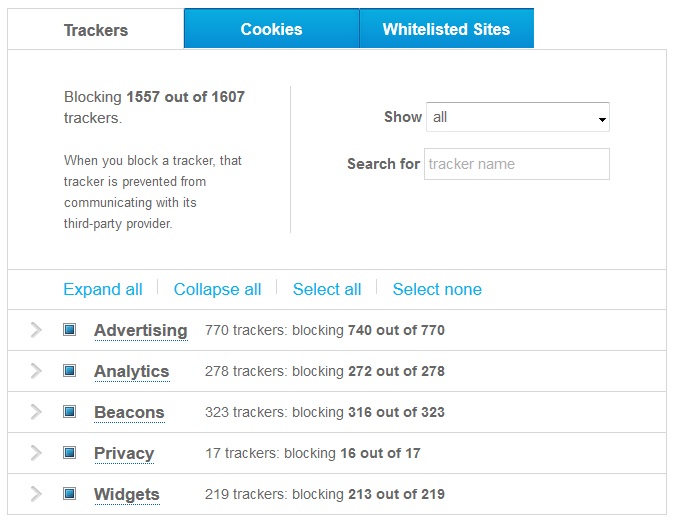 Expand tracker script : Vous aurez la détails des trucs bloqués. Pas utile pour la majorité des gens.