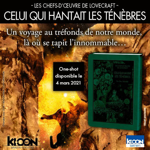 Une nouvelle œuvre de Lovecraft se trouve adaptée en manga : Celui qui hantait les ténèbres. C'est l'éditeur Ki-oon qui s'occupe de sortir cette série et ça fait un bel objet à avoir. Me suis déjà pris La couleur tombée du ciel et c'est des couvertures colorés effet cuir. Les dessins en eux-même sont ciselés et respecte bien l’œuvre. Reste le prix, c'est deux fois plus cher qu'un manga mais de dimensions un peu plus grandes. N'hésitez pas à feuilleter cela à votre librairie, vous serez peut être tenté.