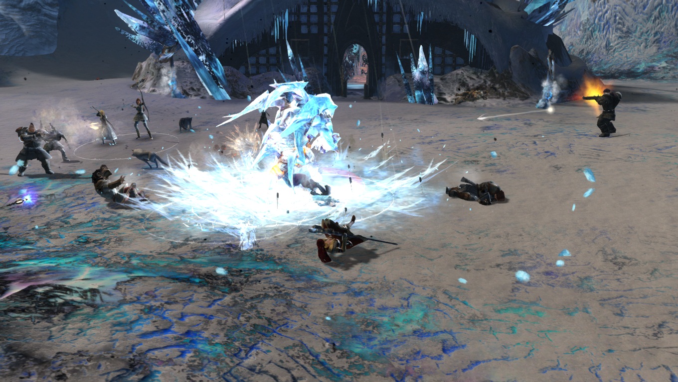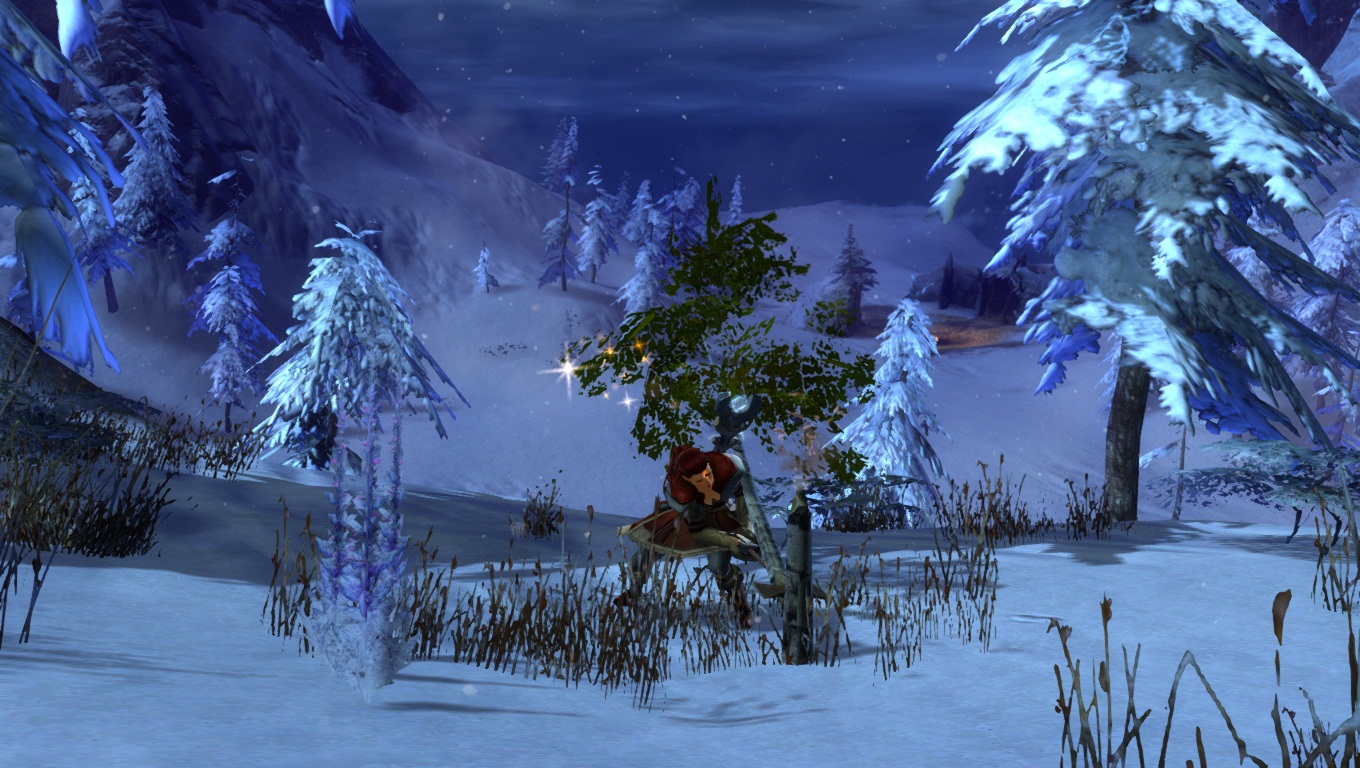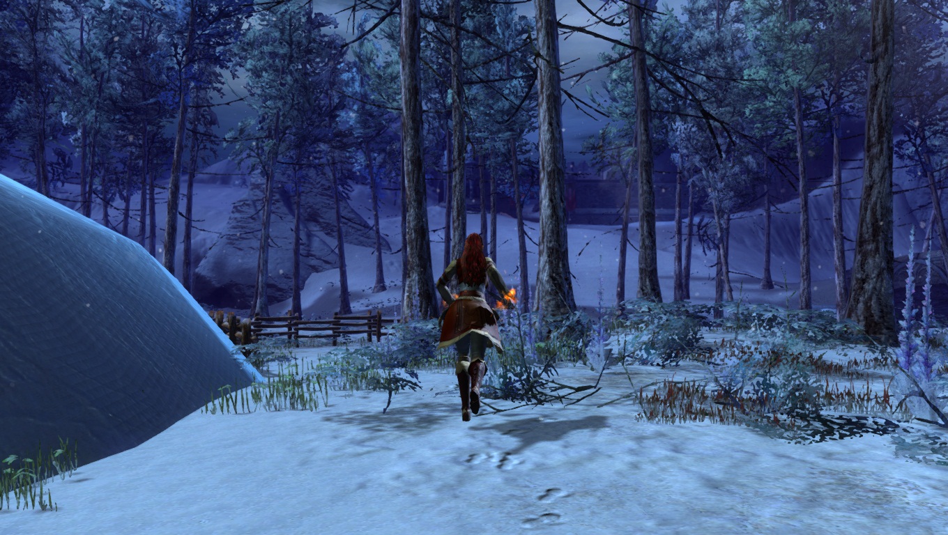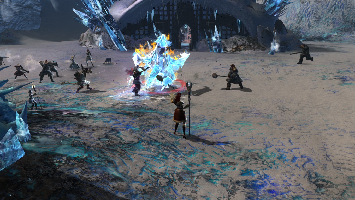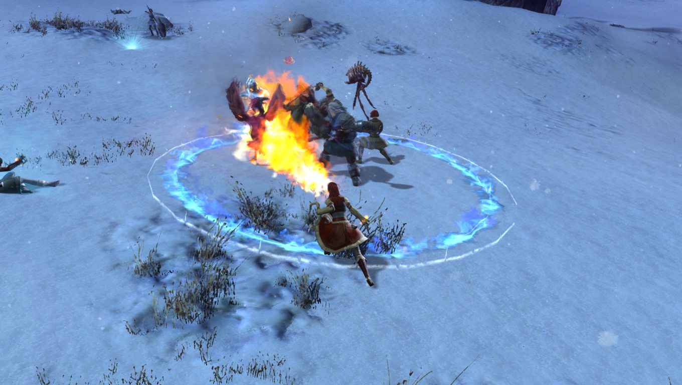 Lorsqu'on parcourt nos territoires sauvages enneigés, il faut toujours s'attendre à croiser de redoutables dangers. Ici, un Chaman des Fils de Svanir pas très content, qui s'est métamorphosé en une immonde créature de glace, et pouvant provoquer de gigantesques cyclones dans la région.