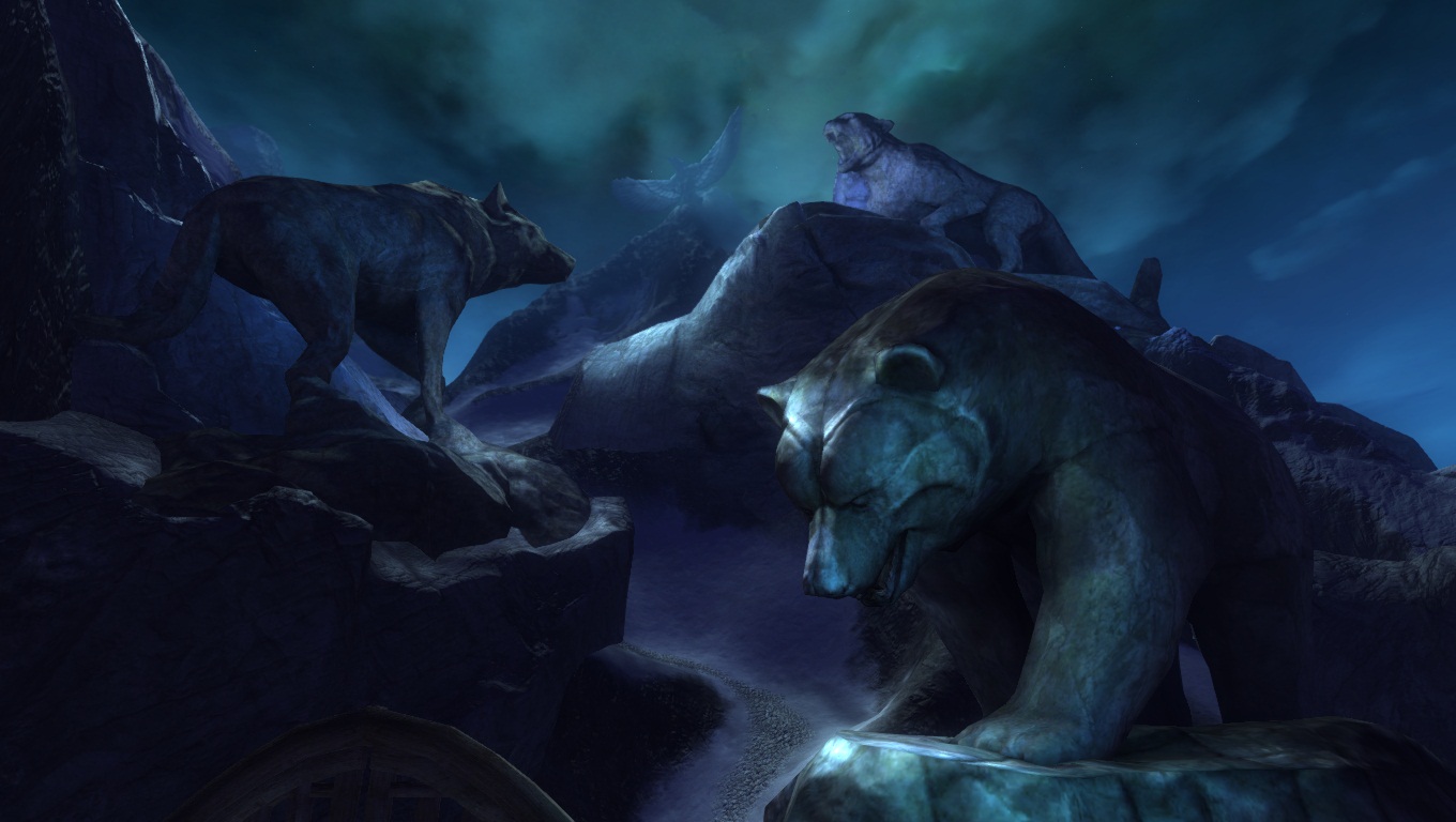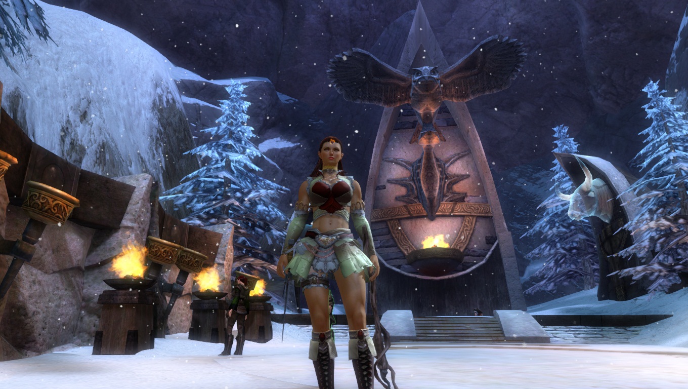 Une atmosphère très spirituelle se dégage lorsqu'on parcourt Hoelbrak, notamment grâce à ses nombreux monuments dédiés aux grands Héros Norns et à divers Esprits Animaux.