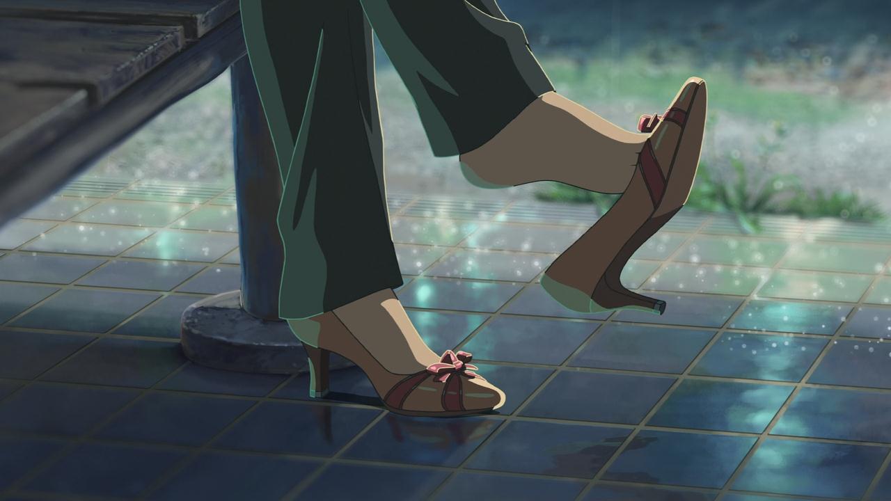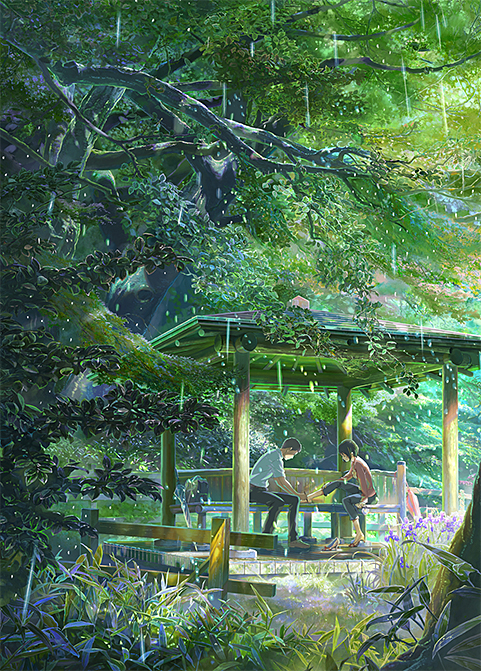 Citation :Takao, qui est en apprentissage pour devenir cordonnier, sèche les cours et dessine des chaussures dans un jardin de style japonais. Il y rencontre une mystérieuse femme qui est plus âgée que lui. Par la suite, et sans se donner rendez-vous, ils commencent à se voir encore et encore mais seulement les jours de pluie. Ils finissent par discuter ensemble et s'ouvrent l'un à l'autre. Mais la fin de la saison des pluies approche…
