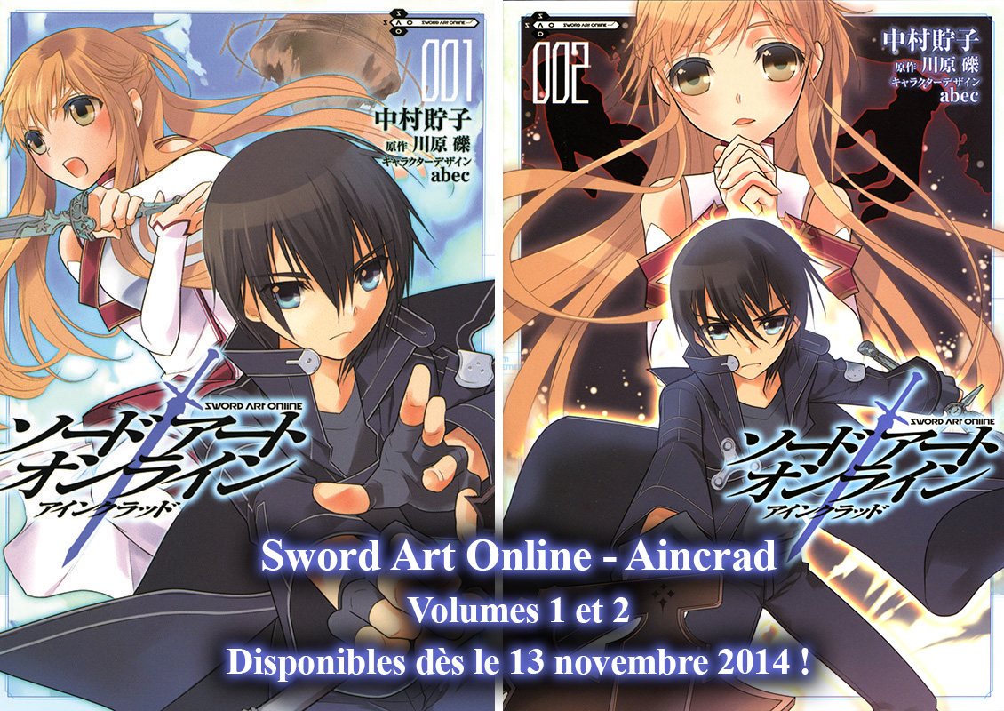 Les deux volumes de l'arc d'Aincrad seront disponibles directement le 13 Novembre prochain. Ils annoncent aussi que la sortie des prochains arcs est aussi prévue pour l'an prochain. Plus d'infos dans leur niouze : http://www.ototo.fr/index.php/actualites...rt-Online2