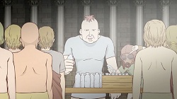 Par contre pour ce qui est de l'animation, je vais nuancé en disant que c'est tout simplement de l'animation flash, vous savez les jeux en flash qu'on trouve facilement sur le net. On aime ou on aime pas, ce type d'animation saccadé est totalement voulus par les créateurs de l'animé, et marque en même temps le caractère pas sérieux, à prendre au second degré de Thermae Romae. Moi personnellement, j'apprécie l'idée.