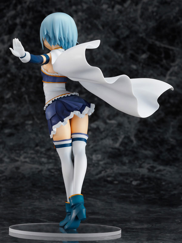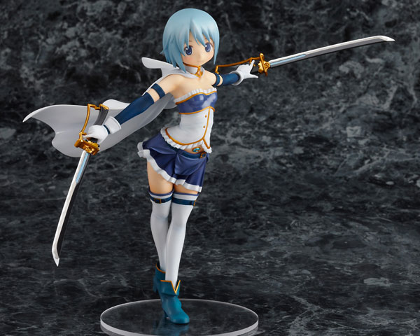 J'avais d'abord cru à un poisson d' Avril car je devais la recevoir mi-Juillet, mais nous ne sommes plus en Avril ! Bon la cause de son retard était apparemment dû à un retard du constructeur. Personnellement, je suis légèrement déçu de la manière dont ils l'ont peint, notamment au niveau des cheveux où il y a un dégradé bleu clair en haut et bleu foncé en bas. Alors qu'il n'y en a clairement pas dans les photos... Mais bon, la très grande et jolie cape de Sayaka, et son petit ventre tout mignon compensent largement ce défaut. ![]() Sayaka Miki
