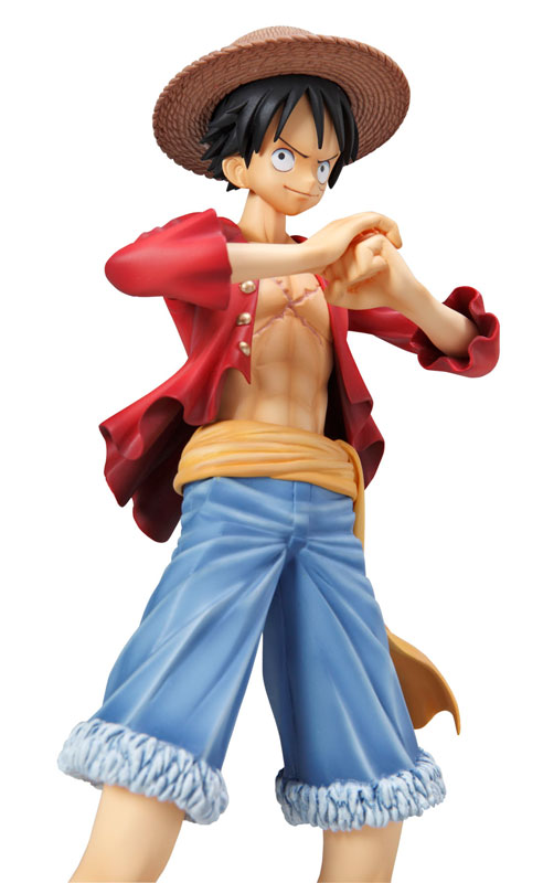 (Source : AmiAmi.com) Et oui !! Notre Capitaine Mugiwara (chapeau de paille) version Issu du fabriquant MegaHouse de la collection Portrait.Of.Pirates (P.O.P.) Sailing Again. Comme vous pouvez le voir, il y a pas mal de têtes et de bras différents qu'on peut changer selon nos humeurs. La figurine est très réussie excepté les deux scissures un peu trop voyantes qui séparent le corps et les bras (là où on peut enlever les bras), on ne le voit pas forcément sur ces photos dû à l'éclairage. Pour devenir fort, il n'y a pas 36 solutions... Manger de la viande ! Le V de la Victoire !! C'est la pose que j'ai choisi pour notre Seigneur des Pirates. ![]() La prochaine fois sera animé par le bras droit de notre Capitaine, doté d'un piètre sens de l'orientation et surnommé le Chasseur des Pirates ! Roronoa Zoro !!