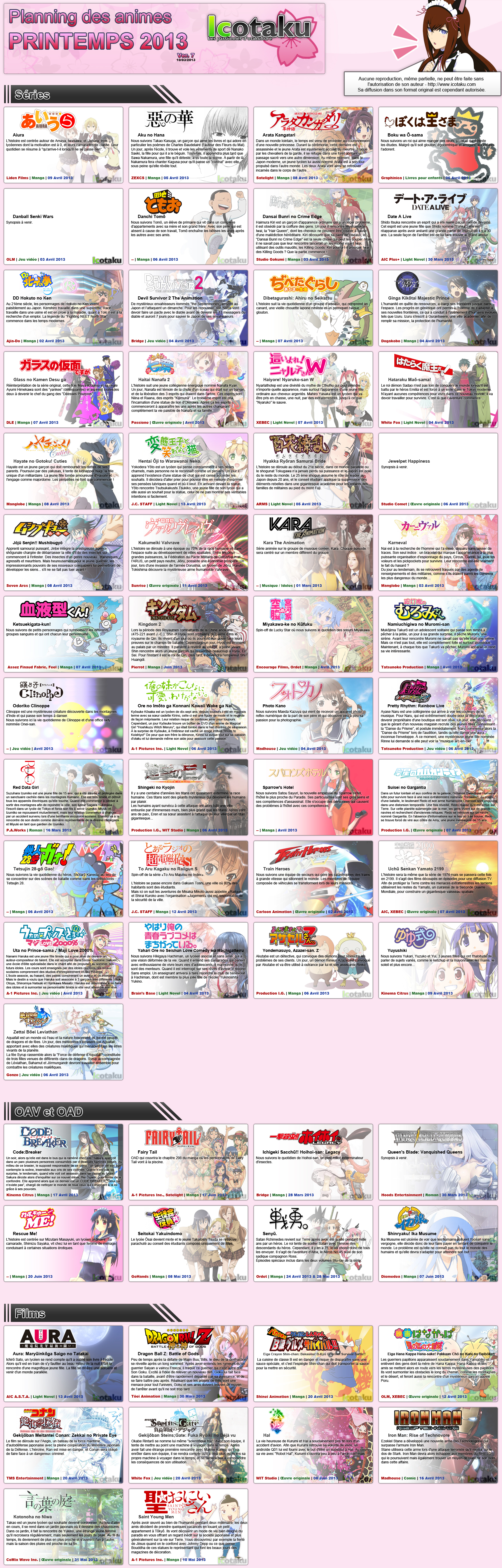 Pas grande chose à se mettre sous la dent pour ma part dans ce printemps 2013. Éventuellement Yahari Ore no Seishun mais j'ai peur que l'humour soit un peu trop lourd, enfin peut être aurais-je une surprise. Il y a aussi la saison 2 de Oreimo que je regarderai surement malgré que je n'ai pas trop aimé la saison 1. Comme dirais rori, va falloir piocher dans les vieux en attendant de meilleures sorties !
