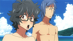 Tout d'abord, citons l'un des seuls points que je trouve bien dans cet animé, c'est, comme Piment l'a remarqué, cette atmosphère d'été très chaleureuse qui nous libère, on a envie d'être dehors en train de bronzer au soleil en sirotant notre cocktail ^_^ (je dis surement ça parce qu'en ce moment on a un temps aléatoire mélangeant pluie & soleil et qu'on aimerai bien que l'été arrive vite! ).