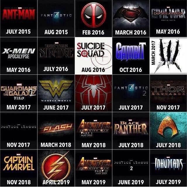 Franchement y'a pas à dire, quand ils sentent le bon filon chez Marvel ils y vont à fond ! Il n'y a que les gardiens de la galaxie 2 que j'attends personellement. Déjà que je suis franchement pas fan de tous ces films de super-héros mais alors là y'a quand même un peu overdose. Si vous aimez, vous êtes gâté !
