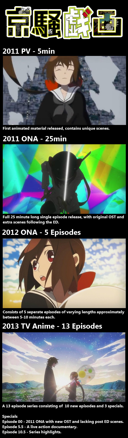 Nombre d'épisodes : Kyousougiga 1 de 25 mins + 5 de 6 à 12 mins,