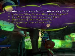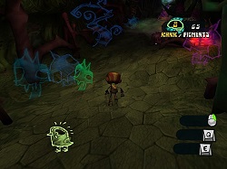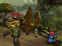 Psychonauts est un jeu réalisé par le studio DoubleFine et leurs designs sont super sympas. Un style à la Tim Burton avec des personnages tous plus étranges les uns que les autres, il vous suffit de regarder les screens pour vous en faire une idée. L'on est donc plongé dans un univers ou la "magie" existe et où il vous faudra acquérir différents pouvoirs au fil de votre aventure. Des petites missions vous montreront comment bien les utiliser et elles sont bien réalisées. Cela ne fait pas tutoriel sommaire que l'on peut trouver. Il faudra d'ailleurs jongler entre vos capacités tout au long de votre périple afin de trouver la manière adéquate de battre un ennemi ou d'avancer plus loin. C'est d'ailleurs ce point qui m'a un peu emmerdé, y'a trop de trucs :| Surtout un en fait qui n'est pas clairement indiqué et que l'on apprend durant sa mise en pratique. Cette fichue "boule d'énergie" qui nous fait comme une sorte de parachute ! Elle est pas clairement indiquée et moi bien sûr je l'avais totalement zappé alors allez tester toutes vos capacités de tous les côtés durant un boss pour que à la fin ça soit ça naméééééé >< Mais bon, sinon l'on découvre assez vite quoi utiliser et l'on a droit à des petits indices par notre professeur si l'on est trop bloqué. L'on reste difficilement bloqué à part si vous faites le têtu comme moi ^^'