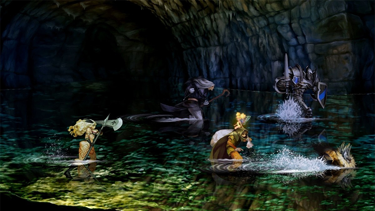 Techniquement, c'est véritablement le premier jeu Vanillaware en haute définition (HD). Et bien que je pense qu'il sera très difficile de faire mieux que Odin Sphere et Muramasa : The Demon Blade, qui étaient tout simplement déjà impeccables en matière de réalisation, je ne m'attends pas forcément à mieux mais à quelque chose de similaire. C'est à dire un travail extrêmement beau et soigné dont les petits détails fusent de toutes parts, il suffit déjà de voir les trailers pour les voir comme par exemple le petit regard des personnages ici et là, leur donnant de la classe et les rendant encore plus vivant que jamais. Ensuite, on retrouve la patte graphique de George Kamitani qui joue toujours un très grand rôle, les décors ressemblent tous à des tableaux d'oeuvre d'art, tous aussi beaux et contemplatifs les uns que les autres. Dégageant magnifiquement l'ambiance médiévale où épées et sorcelleries sont fondamentales, et qui pourra indubitablement compter sur l'Ost qui s'annonce déjà somptueuse car issue du grand maître Hitoshi Sakimoto ! Concernant le chara-design, il se veut toujours très sensuel, grotesque ou encore mignon, avec un style très manga. Il suffit de voir l'énorme poitrine de la Sorceress dont on ne peut passer à côté, la carrure du Fighter avec son bas du corps et sa tête tout petits alors que son torse est démesurément grand, ou encore l'Elf super mignonne, et avec la voix d' Asami Imai alias Kurisu de Stein;Gate, elle est encore plus KAWAII !! \o/