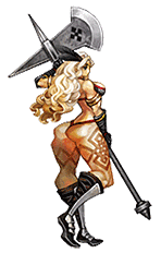 Un très robuste bagarreur aussi borné que bourru. Ses deux puissants bras lui permettent de porter une arme dans chaque main, mais aussi d'utiliser un style de combat assez déconcertant, à la fois vulgaire et brutal. N'hésitant pas à attraper ses adversaires pour ensuite les lancer comme de simples tonneaux de bière.