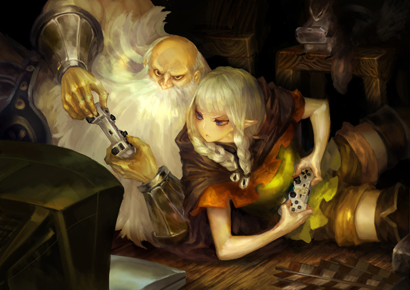 - un Dwarf, en fait, c'est Zangief de Street Fighter ! \o/ on chope les mobs pour les balancer d'un bout à l'autre de l'écran, très marrant à jouer mais plus intéressant à jouer en groupe pour compenser son gros point faible, les combats aériens (bah oui, il est un peu petit notre nain ^^").