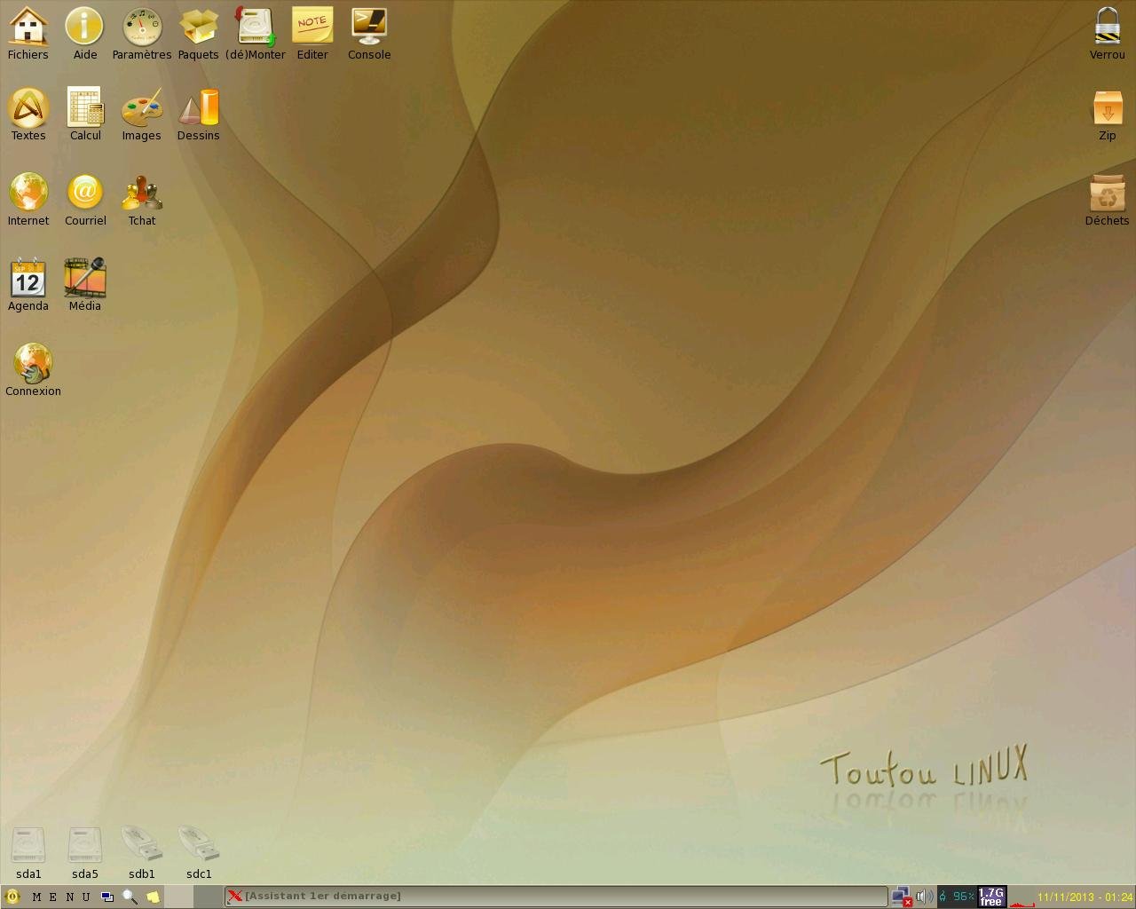 La distribution que l'on va utiliser est Toutou Linux, une distribution très légère (114Mo) ce qui lui permet de se charger directement sur la mémoire de votre ordinateur, il n'y a pas d'installation sur votre disque dur.