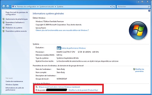 Pour ce faire il y a différents moyen et si ce n'est pas une version OEM il vous suffit d'aller dans le menu démarrer, un clique droit sur ordinateur et Propriétés.