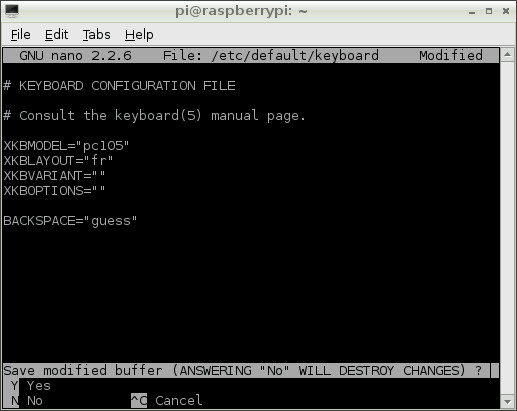 sudo nano /etc/default/keyboardCela va vous ouvrir le fichier de configuration du clavier en mode texte :
