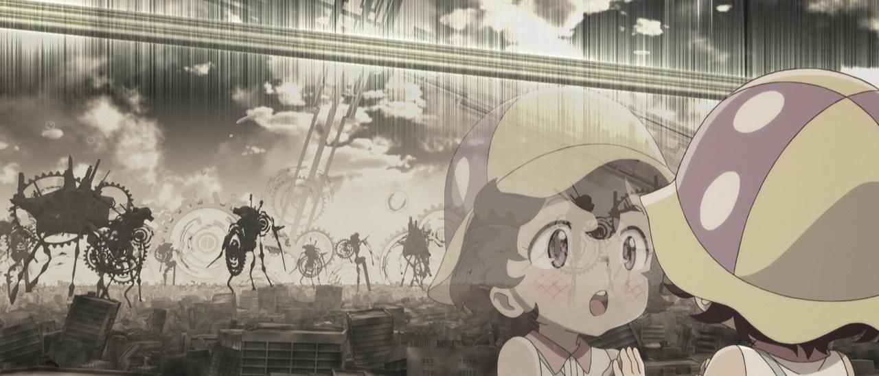On commence par le scénario sous forme d'histoire plutôt originale, avec nos deux witches qui vivent leur quotidien mais qui seront rapidement confrontées à un étrange phénomène, l'apparition d'un gigantesque arbre portant de mystérieux bâtiments. De par sa nature très curieuse, Yoyo part en expédition et se retrouve piègée dans un autre univers. Le problème, c'est que cette originalité ne se limite qu'au genre witch car sur le fond, il n'est pas si original que ça, devenant finalement peu intéressant lorsqu'on a compris ce qu'il en découle. C'est peut-être parce que j'aurais préféré une histoire qui se passe dans un monde complètement magique et inédit, afin de nous émerveiller et d'attiser notre curiosité tout au long du film. Car malheureusement cette petite touche d'espoir que j'avais eu au début du film, sera finalement très rapidement balayée en nous retrouvant dans un monde que l'on ne connaît que trop bien, manquant complètement d'originalité et d'inspiration sur ce coup. Si bien que le film ressemble plus à du Magical Girl qu'à du Witch que j'espérais tant. Toutefois la narration reste très bien orchestrée, chaque instant du film est pleinement utilisé avec même quelques moments forts assez marquants, pas le temps de s'ennuyer. Après il reste bien une ombre sur le tableau, la résolution du problème que j'ai trouvé niaise à souhait mais surtout très dur à avaler, notamment dans la scène où :